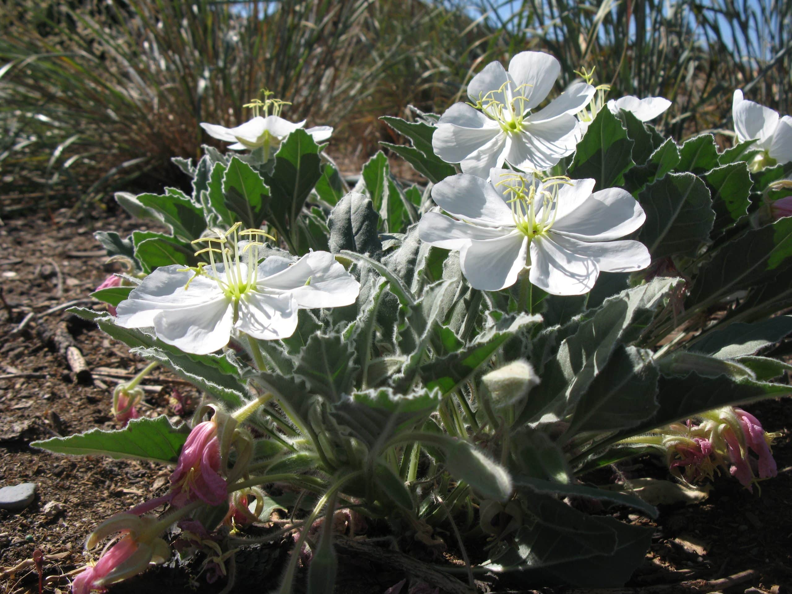 Showy white flowers open after sunset and redden with age. Beautiful in moonlight. Grows in sagebrush-steppe and pine forest.