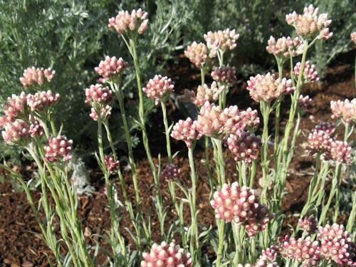 Clump-forming perennial with linear, grayish woolly leaves in whorls at base of stems; flowers turn rosy ting with age. Habitat: Common in sagebrush steppe and grasslands, and dry open forests.